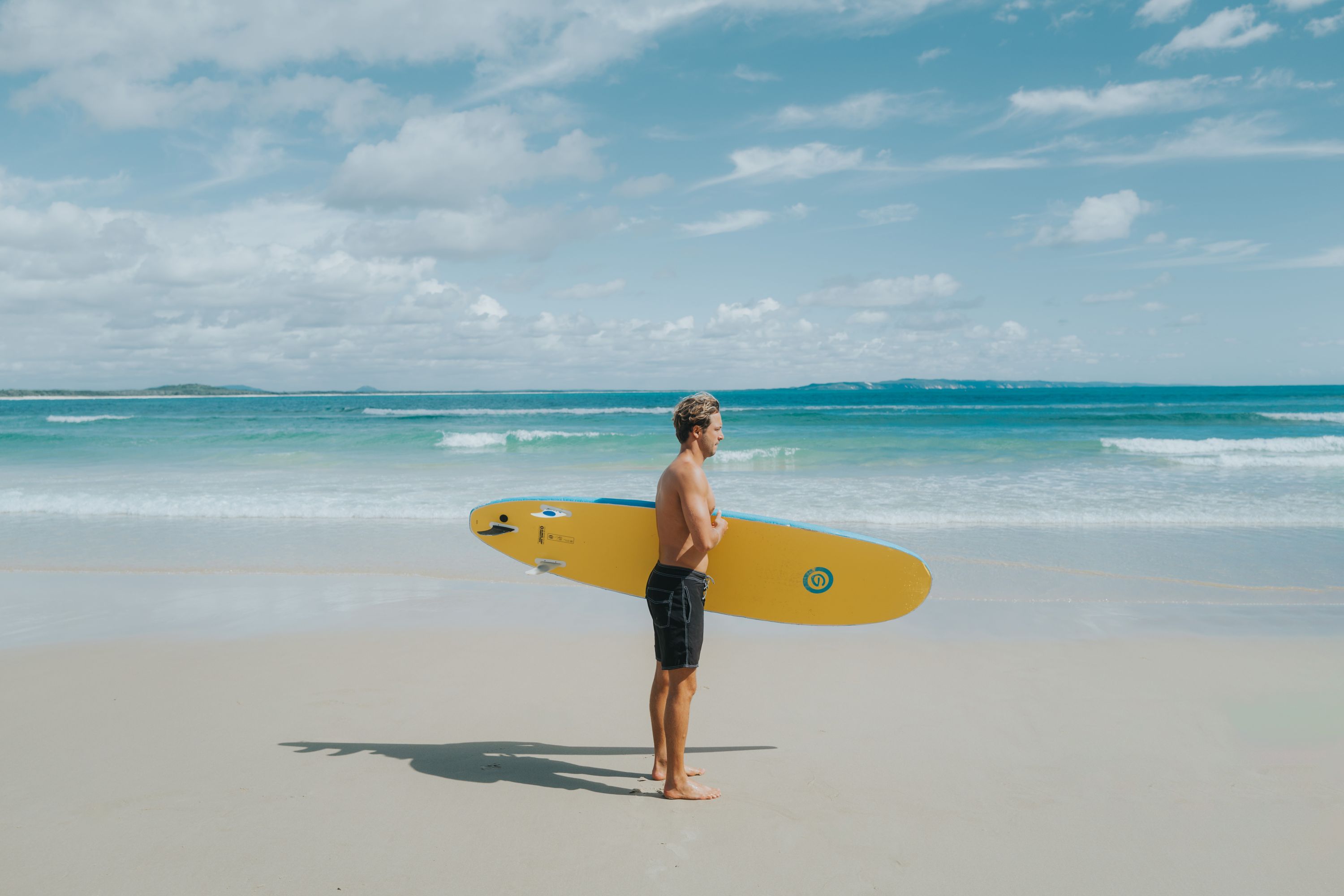 Wategos Beach, just around the corner, is more protected and suited to pure beginners. Gentle rollers, fewer crowds, and a beginner-friendly surf school scene make it a great spot to start.